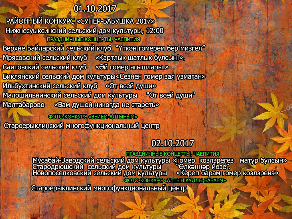 График культурно-массовых мероприятий, посвященных Дню пожилого человека с 1-2 октября