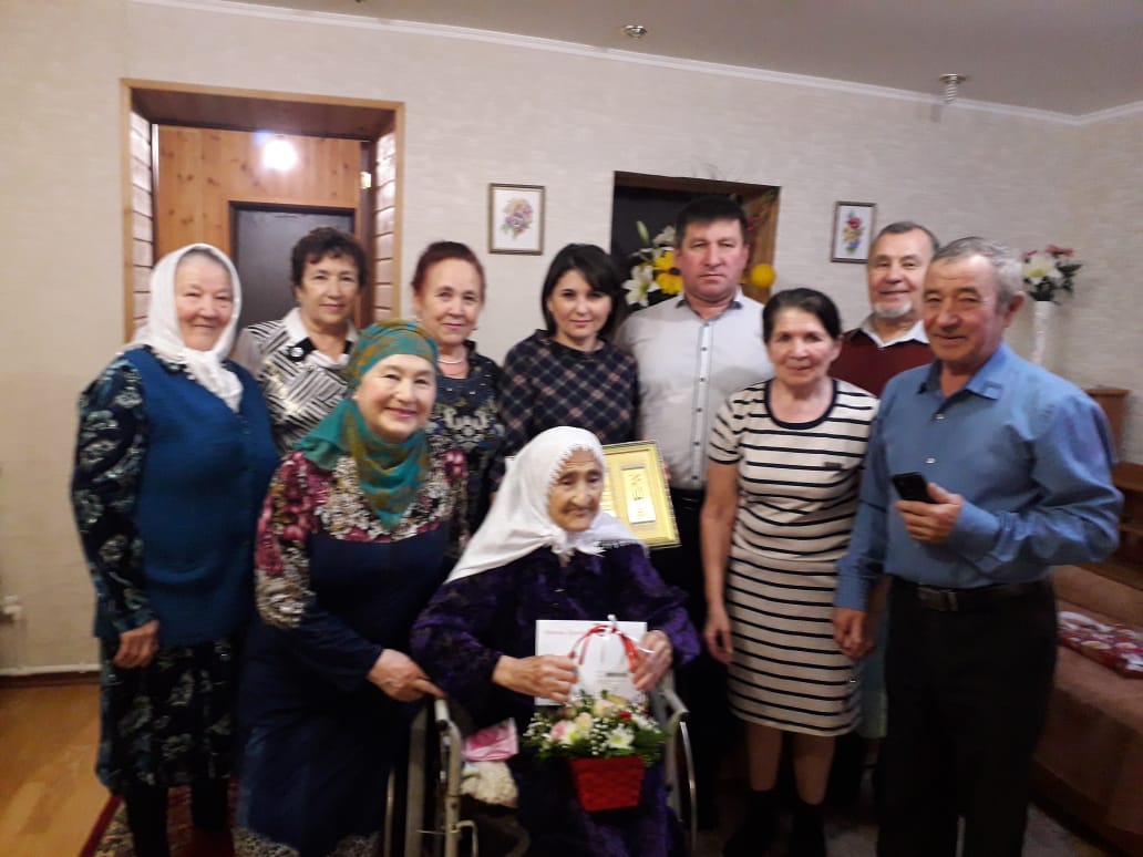 Возраст почтенный. Маннапову Иклиму Шарифулловну-Великую труженицу тыла , сильную духом женщину пришли поздравить в день юбилея,с 95 летием, руководитель аппарата Совета Тукаевского муниципального района Г.А. Шафикова ,соседи и близкие,родные , глава Кузкеевского сельского поселения Э.Р. Гараев. Ей вручили поздравления от президента России Владимира Путина и памятный подарок от имени Главы района Ф. Камаева