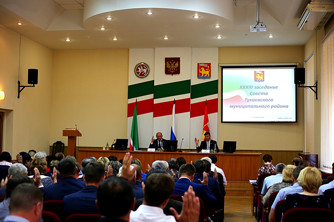 29 мая в актовом зале Администрации района состоялось XXXIII заседание Совета Тукаевского муниципального района . В работе очередного заседания во главе с Председателем Совета муниципального района Ф.М. Камаева приняли участие 38 депутатов района из 45. В ходе работы Совета было рассмотрено 8 вопросов.