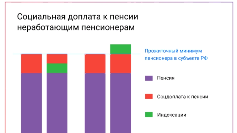 Согласно прежним правилам, социальная доплата к пенсии предоставлялась с целью доведения общей суммы материального обеспечения пенсионера до прожиточного минимума, установленного в регионе его проживания. По новым правилам социальная доплата предоставляется таким образом, что прибавка к пенсии в результате проведенных индексаций выплачивается сверх величины прожиточного минимума пенсионера.