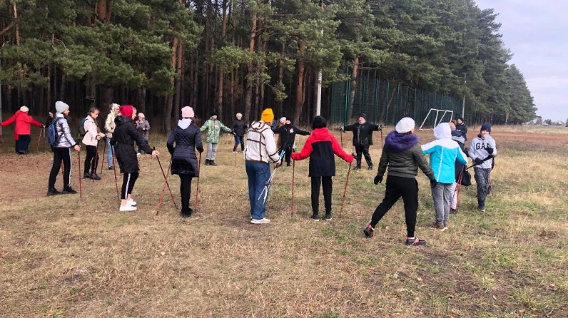 26 октября челнинцы старшего поколения и тимуровцы 26 гимназии присоединились к занятию по скандинавской ходьбе на открытом воздухе в парке Прибрежный.