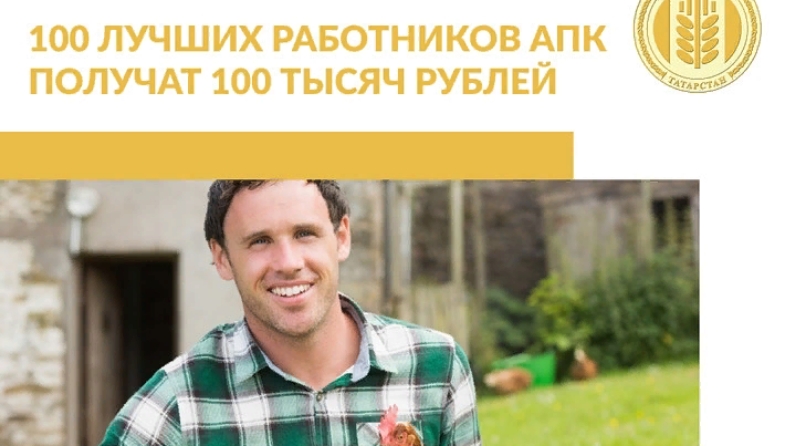 Министерство сельского хозяйства и продовольствия РТ продолжает прием заявок на ежегодный конкурс «Лучший работник агропромышленного комплекса Республики Татарстан», который призван повысить статус и престиж квалифицированных работников на селе. 100 лучших работников агропромышленного комплекса получат по 100 тысяч рублей.