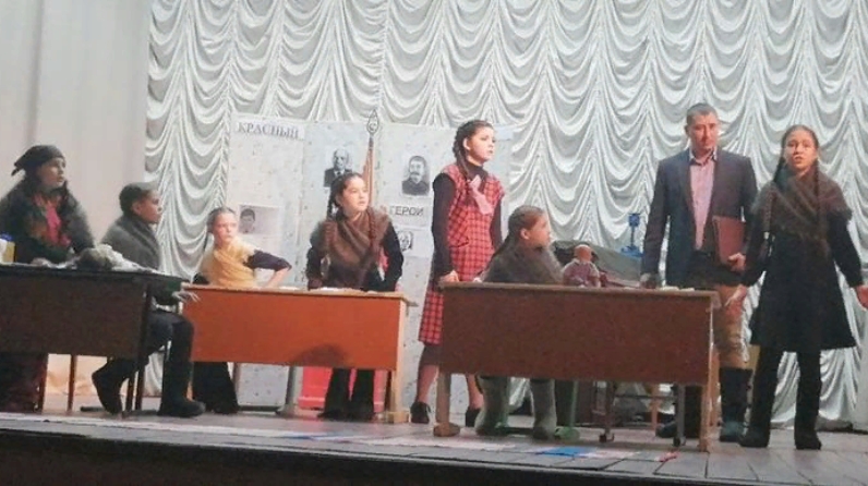 На сцене – голодные и обездоленные дети в старых и изношенных одеждах, им пришлось наравне со взрослыми взвалить на свои юные, еще совсем неокрепшие плечи всю тяжесть жизни. Война отобрала у них детство, может быть поэтому и лица их серьезны, взгляд задумчив. А ведь они должны смеяться, радоваться жизни, получать знания, выполнять посильный труд… Тяжелая судьба этих рано повзрослевших ребят заставляет сердце сжиматься от боли. Послевоенные суровые годы. И хоть тела детей истощены от голода, в глазах не погас огонек надежды, веры в лучшее, испытания не сломили их дух.