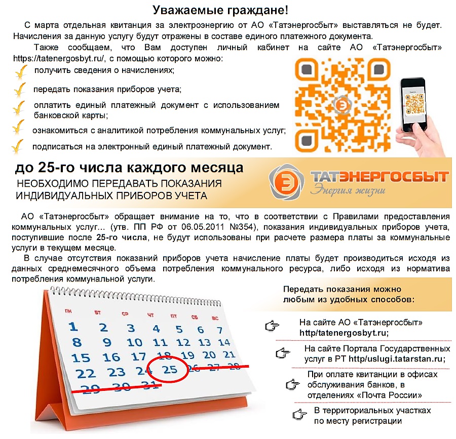 АО «Татэнергосбыт» на сегодняшний день является не только гарантирующим поставщиком электроэнергии, но и выполняет функции расчетного центра по начислению платежей за все виды жилищно-коммунальных услуг.