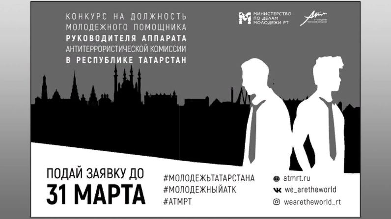 Объявлен Конкурс на должность молодежного помощника руководителя аппарата Антитеррористической комиссии в Республике Татарстан.