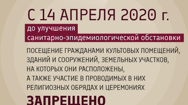 С 14 апреля в Татарстане запрещено посещение культовых сооружений, а также участие в религиозных обрядах и церемониях, проводимых в них. Соответствующее постановление выпустил Кабмин РТ. Эта мера будет действовать до улучшения санитарно-эпидемиологической обстановки.