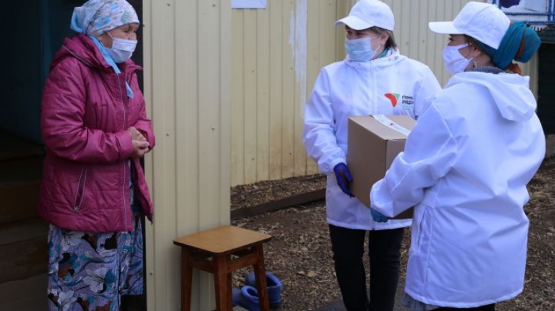 Волонтеры вручили ей продуктовый набор. Она живет одна, детей нет, муж умер. Халима Кашапова – уважаемый человек в Кузкеево, всю жизнь трудилась, была дояркой, поваром, сейчас на заслуженном отдыхе. С введением режима самоизоляции она никуда не выходит, продукты ей приносит социальный работник-волонтер Аклима Гараева. Сегодняшнее событие ее сильно затронуло. За оказанную помощь она благодарна Президенту РТ Рустаму Минниханову и всем добрым людям. В такой сложной ситуации важен не столько подарок, а сколько внимание со стороны общества, говорит Халима апа.