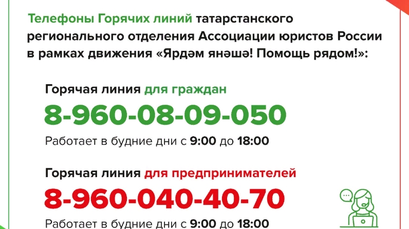 Татарстанское региональное отделение российской Ассоциации юристов присоединилось к республиканскому движению «Ярдәм янәшә! Помощь рядом!» и открыло две Горячие линии – для граждан и предпринимателей.