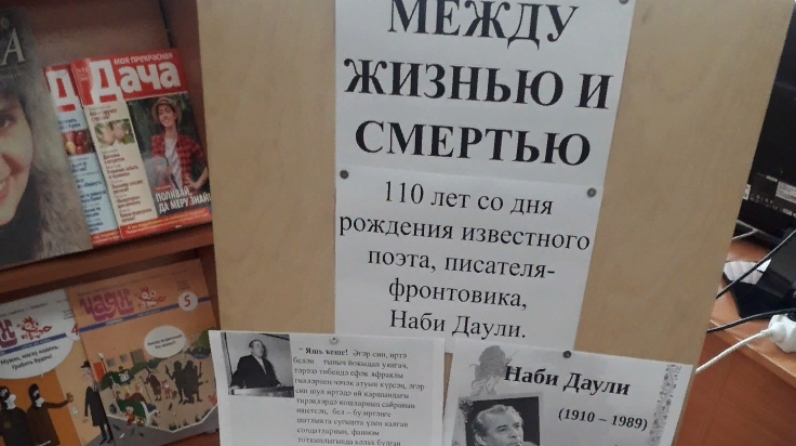 Сегодня исполняется 110 лет со дня рождения известного поэта, писателя-фронтовика, рассказчика и романиста, публициста и драматурга Наби Даули. К этой дате в Татарстанской сельской библиотеке оформлена книжная выставка «Между жизнью и смертью».