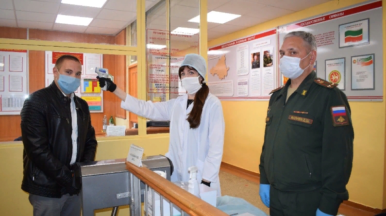 На основании решения санитарно-противоэпидемической комиссии Кабинета Министров Республики Татарстан от 14.05.2020 г. № 36 за два дня до отправки на сборный пункт военного комиссариата Республики Татарстан в городской больнице №5 г.Набережные Челны организовано тестирование призывников спланированных к отправке на COVID-19 с получением результатов на следующий день. На сборном пункте военного комиссариата Республики Татарстан развернута мобильная поликлиника, в которой организован первичный фильтр для лабораторного обследования на