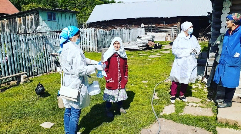 Члены УИК не заходят в квартиры, они должны продезинфицировать дверную ручку и звонок, поставить ящик для голосования у двери, повесить на ручку пакет с бюллетенем, позвонить в дверь и отойти на два метра.