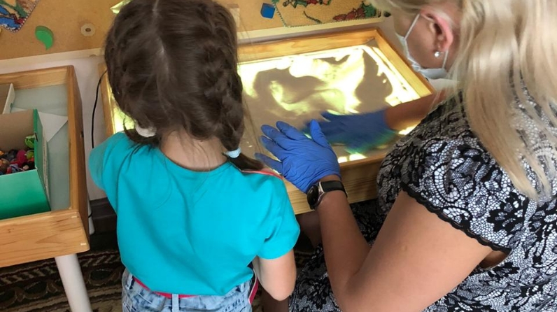 Занятие было направлено на снятия психоэмоционального напряжения, развитие тактильной чувствительности, создания положительного эмоционального настроя, эмоциональной раскрепощенности, активного и свободного выражения своих эмоций и настроения в постройках из песка.