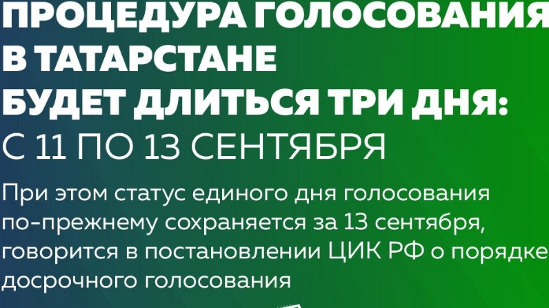 Центральная избирательная комиссия России приняла Постановление о порядке досрочного голосования 13 сентября, таким образом поставив точку в обсуждениях вариантов организации выборов. Голосование будет многодневным и продлится 3 дня: 11, 12, 13 сентября. Статус единого дня голосования сохраняется за 13 сентября.