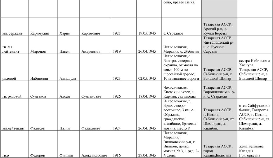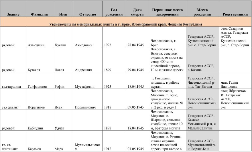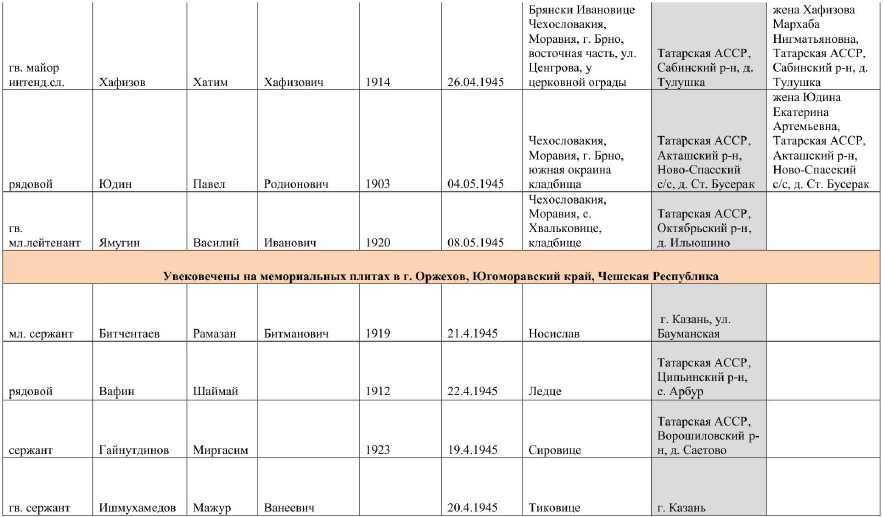 захороненных в г. Брно и н.п. Оржехов, и увековечению их памяти.