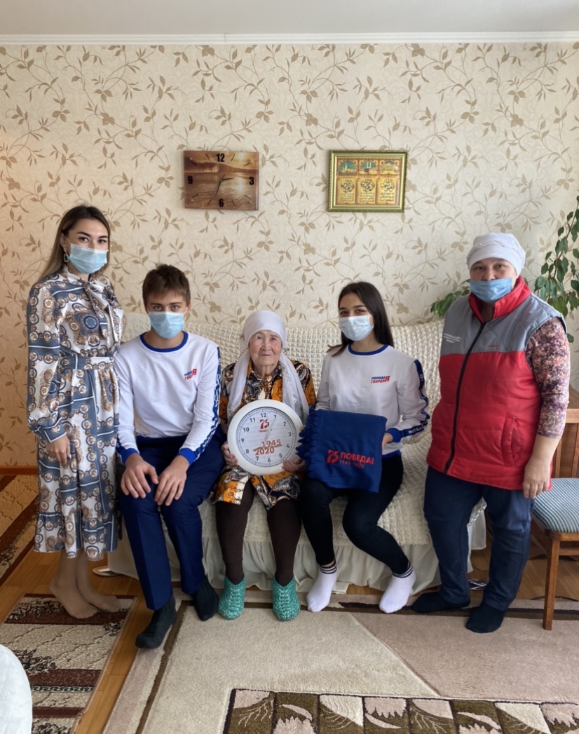 1 октября 2020 года активисты местного отделения Тукаевского муниципального района ТРО ВОО «Молодая Гвардия» и представитель Молодёжного Парламента навестили ветеранов и поздравили их с днём пожилых людей, вручив подарочные наборы – часы и плед.