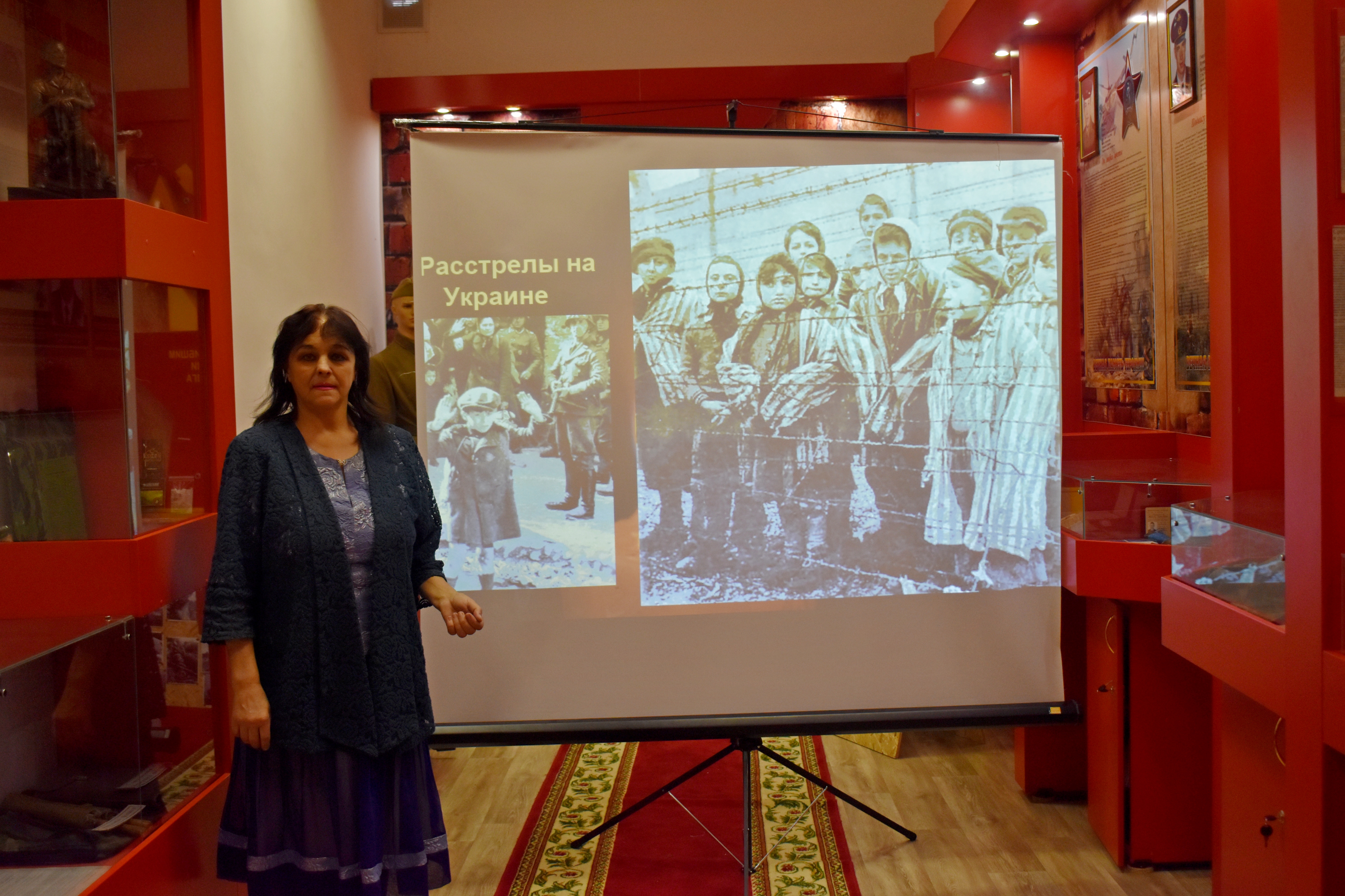 Были показаны отрывки из художественных фильмов о Холокосте («Мальчик в полосатой пижаме» и «Собибор»); мемориалы, музеи и памятники во многих странах мира в память о жертвах нацизма.