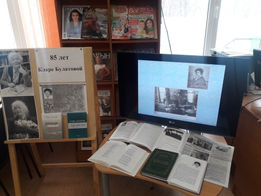 18 марта 2021 Татарстанская сельская библиотека провела литературный вечер «В стихах мое сердце», посвященный 85 летию Кларе Гарифовне Булатовой, для пожилых читателей нашей библиотеки. Библиотекари представили презентацию о биографии и творческом пути автора, подготовили книжную выставку, в формате «открытого микрофона» читали стихотворения на русском и татарском языках. Вечер прошел в очень теплой атмосфере поэзии, красивых и мелодичных стихов, а чаепитие добавило душевного расположения и домашней безмятежности.