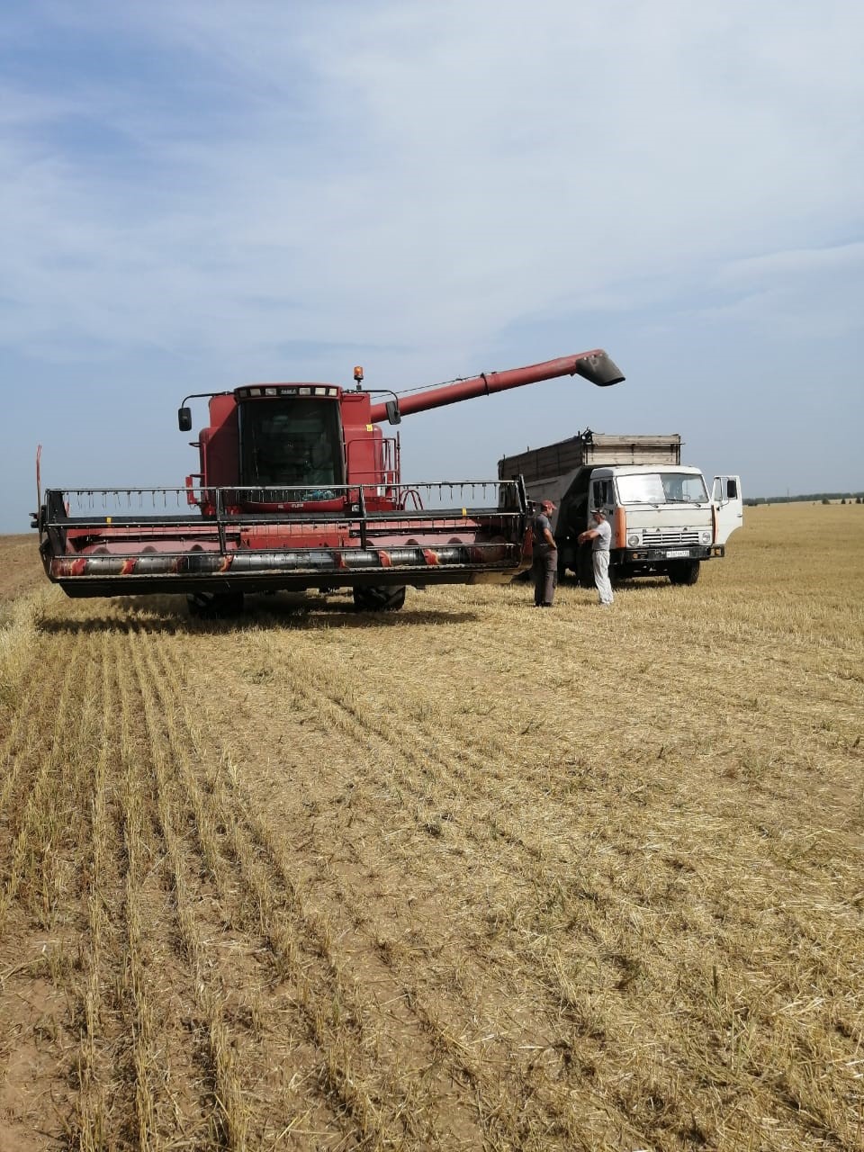 На снимке КФХ Ахметгалиев уборка пшеницы.