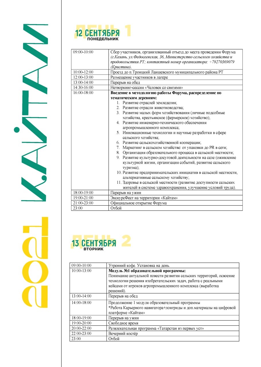 С 12 по 16 сентября 2021 года в Центре обучения и оздоровления лагеря «Звёздный» Лаишевского муниципального района Республики Татарстан при поддержке Президента Республики Татарстан Р.Н. Минниханова и Федерального агентства по делам молодёжи планируется проведение Всероссийского проекта «Кайтам» (далее – Проект).