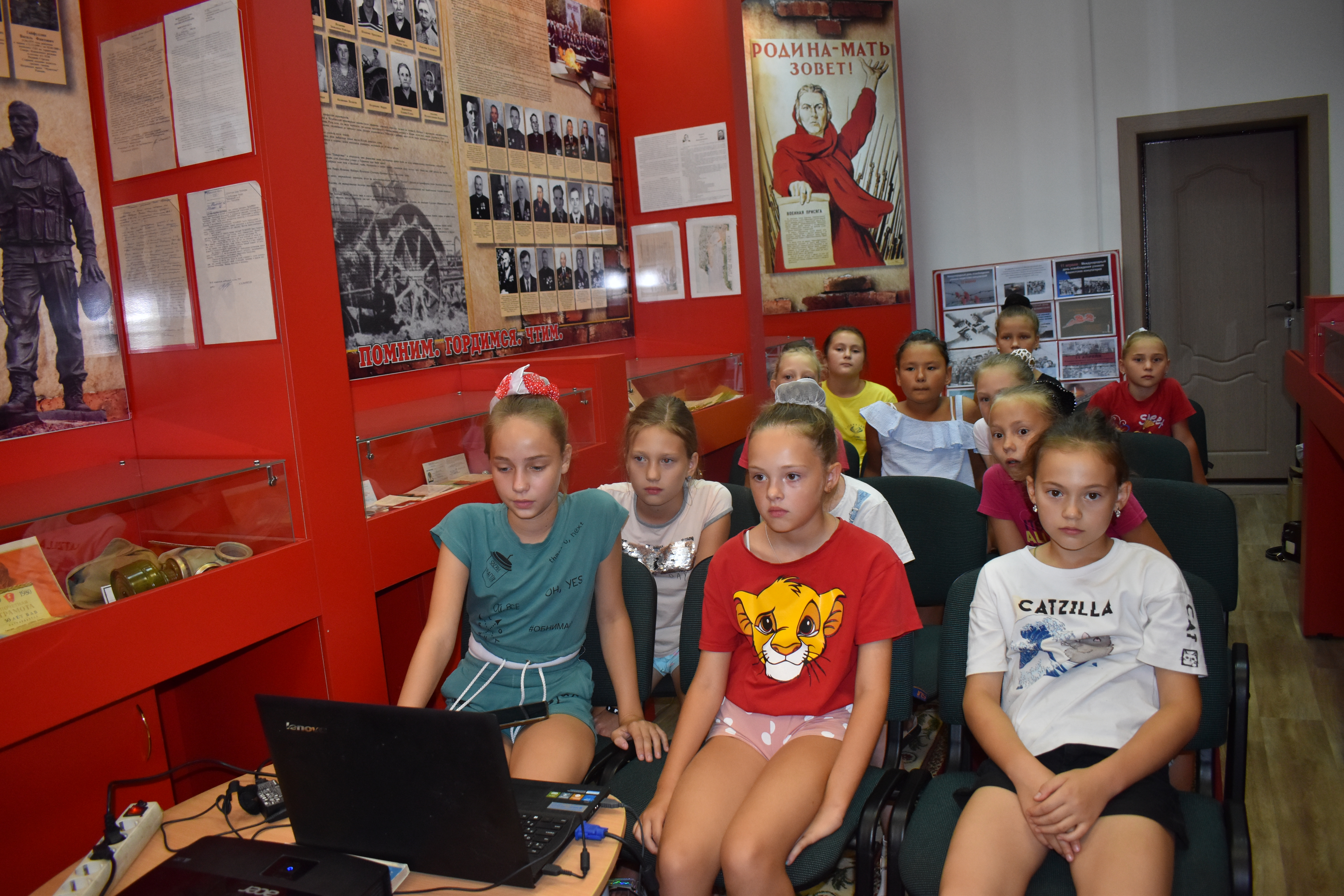 Сегодня, 23 августа 2021 года, в Музее боевой славы «Патриот», прошёл урок мужества «Память огненных лет. Курская дуга», посвященный Дню воинской славы России – День разгрома советскими войсками немецко-фашистских войск в Курской битве. Работники дома культуры рассказали о подготовке к сражению и о ходе боевых действий, которые начались 05.07.1943 г. и закончились 23.08.1943 г. полной победой Советской армии, победой советских солдат и советского оружия, также о героях совершивших подвиги в этом сражении, о танковом сражении под Прохоровкой. В ходе мероприятия были зачитаны отрывки из повести Ю. Гончарова «Сто холодных ночей» и очерка А. Л. Гетмана «Гвардейцы Курской дуги». А также прозвучали стихи А. Твардовского о Курской битве, песня «На безымянной высоте». Детям был представлен видеофильм «Курская битва». В заключение мероприятия ребята отвечали на вопросы викторины «Курская дуга», а затем у памятника «Никто не забыт, ничто не забыто» почтили память павших героев минутой молчания и возложили венок и цветы гвоздики, сделанные своими руками.