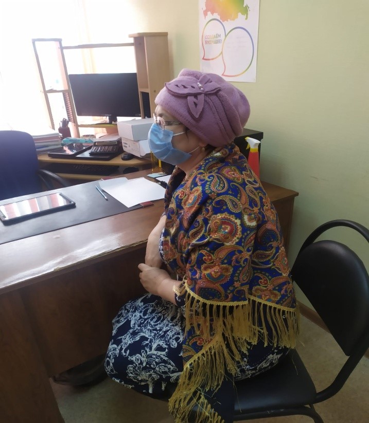 На фото посетители стационарного участка с. Мусабай Завод, контролер Хусаинова Зульфия.