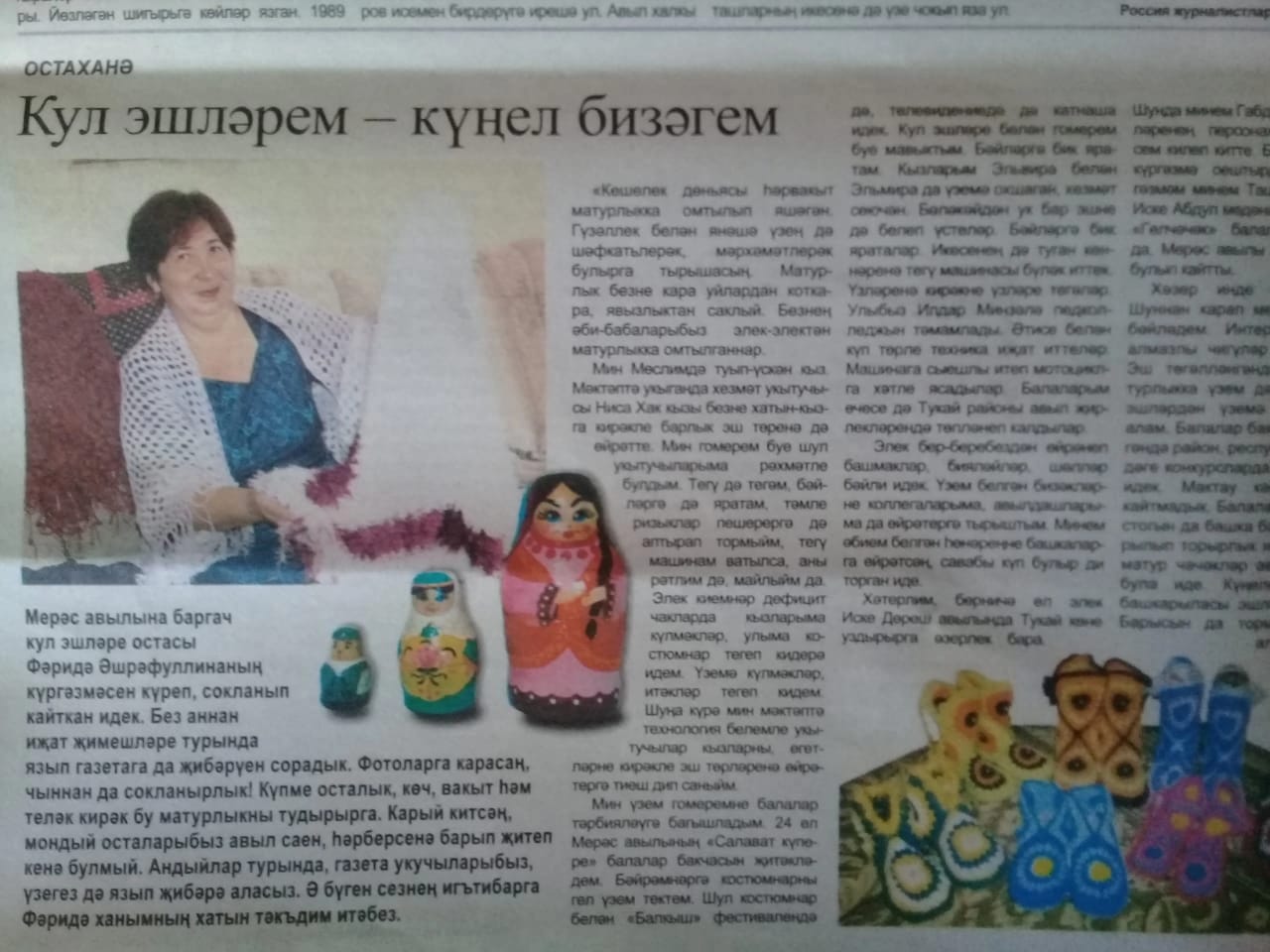 Ашрафуллина  Фарида  Ахметфатыховна,  1958 г. р.,  Старо - Абдуловское  СП.  Вязание,  шитье.  Поделка  / куклы  /