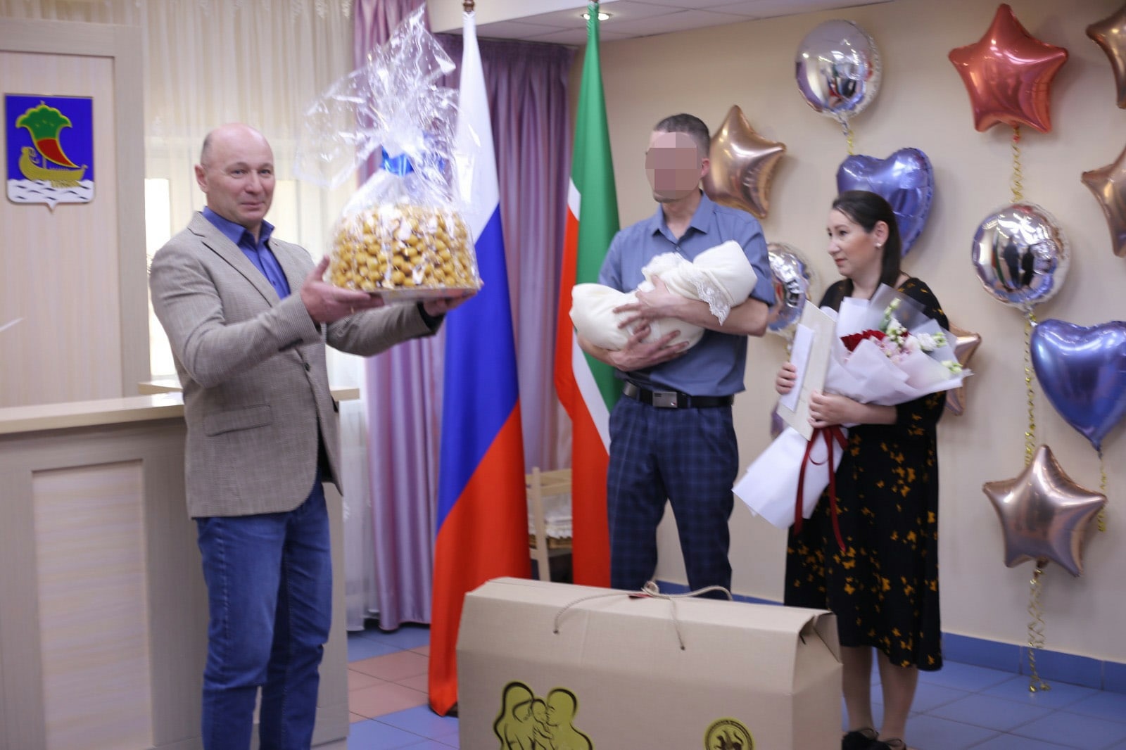 Поздравили всю их большую и дружную семью с новорожденным. Вручил от района и республики памятные подарки.