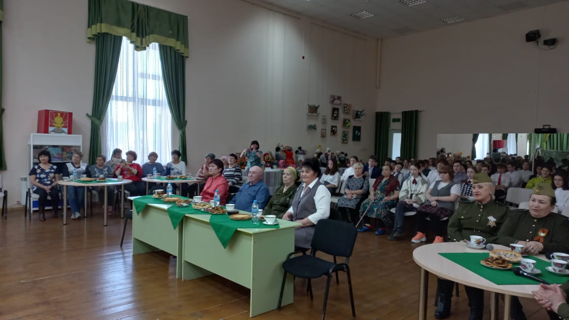 В доме культуры поселка Круглое Поле прошла встреча подрастающего поколения с ветераном войны - бывшим несовершеннолетним узником концлагеря Левицкой О.И., с членами семей участников специальной военной операции, волонтерами, оказывающими помощь участникам СВО. На мероприятии приняли участие председатель районной общественной организации Совета ветеранов Файруза Вазеева, заведующий надомным отделением Комплексного центра социального обслуживания населения "Шафкатъ" Гульнур Исмагилова.