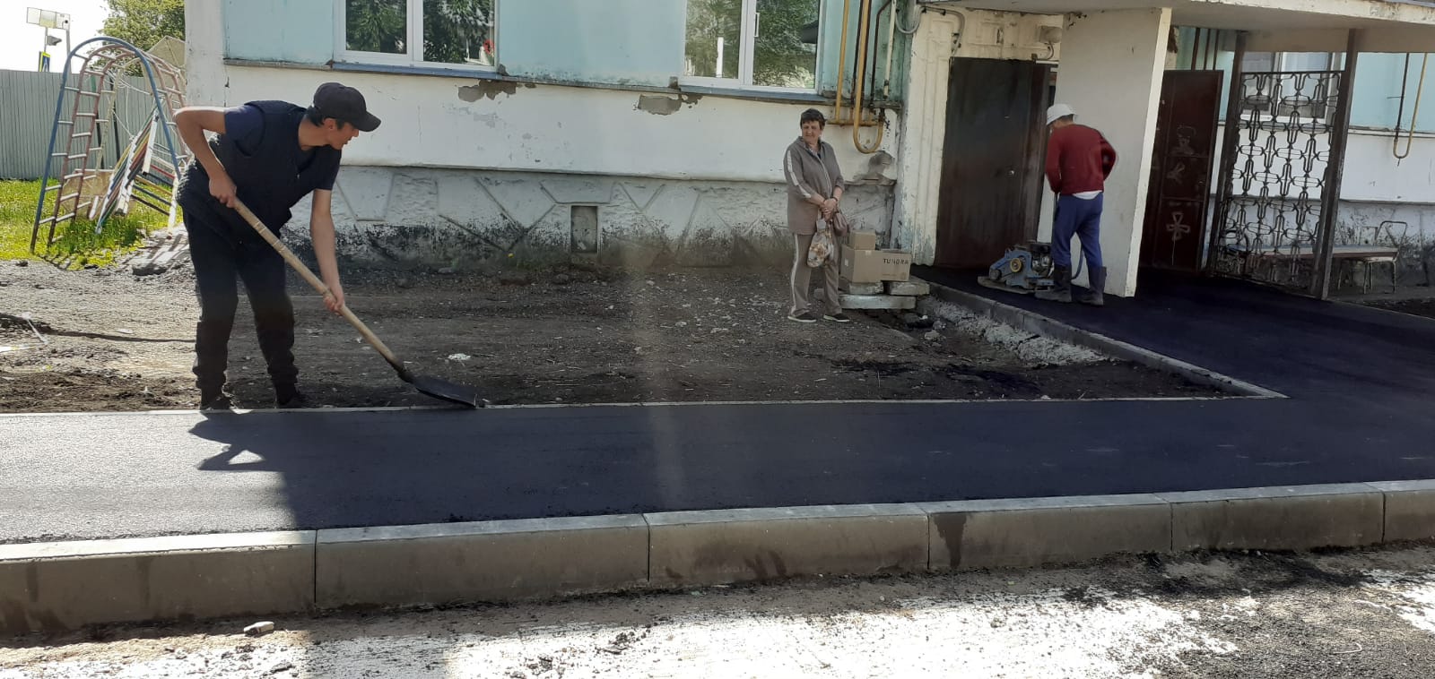 В поселке Комсомолец начались строительные работы благоустройства дворовых территорий трех дворов многоквартирных домов по программе Раиса Республики Татарстан "Наш двор".