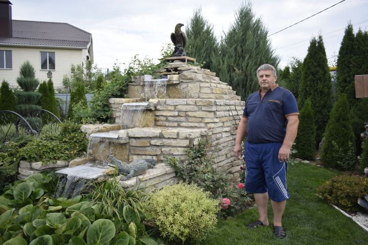 Во время беседы с хозяевами выяснилось, что беседка в саду, печка под открытым небом, узорчатый декоративный мостик среди благоухающих цветов, деревянный колодец во дворе – дело рук Юрия Артемьевича. Только фонтан, служащий источником прохлады в жаркий летний день, сделан на заказ. Но и тот – строго по чертежам и схемам хозяина дома.