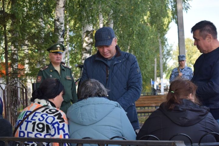 На церемонии прощания с воином приняли участие Глава района Фаил Камаев, руководитель Татарстанского отделения Фонда пенсионного и социального страхования РФ Эдуард Вафин, военный комиссар Комсомольского района города Набережные Челны и Тукаевского района Дамир Валиев, родные, односельчани, близкие и друзья.