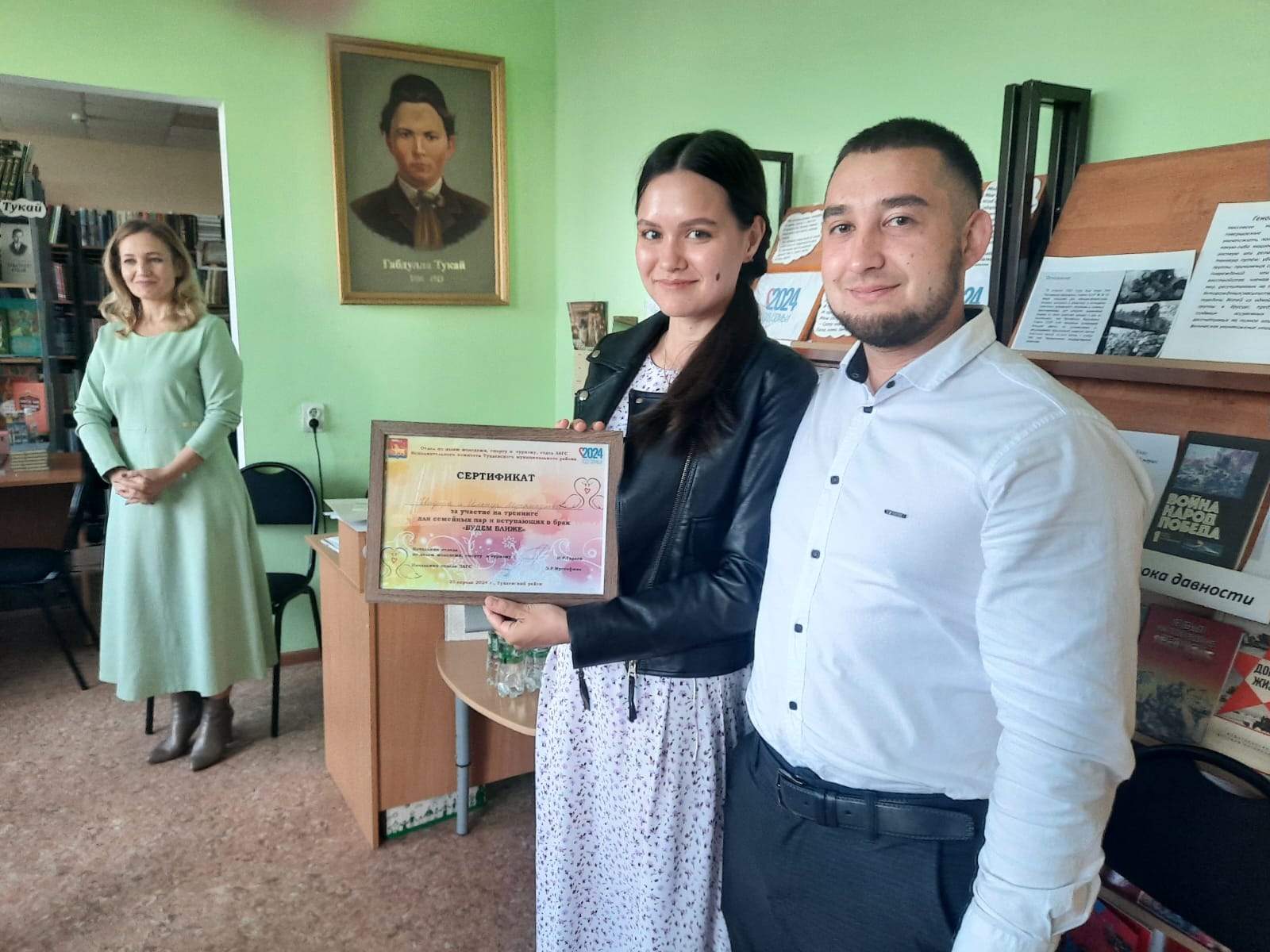В рамках реализации данного гранта, 25 апреля 2024 года в Нижнесуыксинском СДК прошел тренинг для молодых семейных пар и вступающих в брак под названием «Будем ближе». В мероприятии приняли участие пары из Иштеряковского, Бурдинского и Нижнесуыксинского сельских поселений.