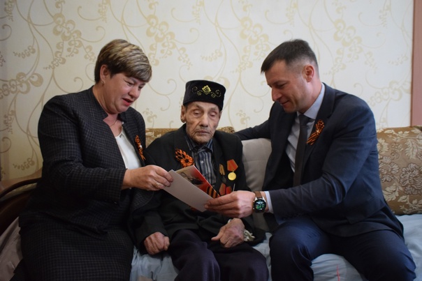 Рустем Закиров вручил ветерану от имени Раиса Республики Татарстан Рустама Нургалиевича подарки в честь Дня Победы.