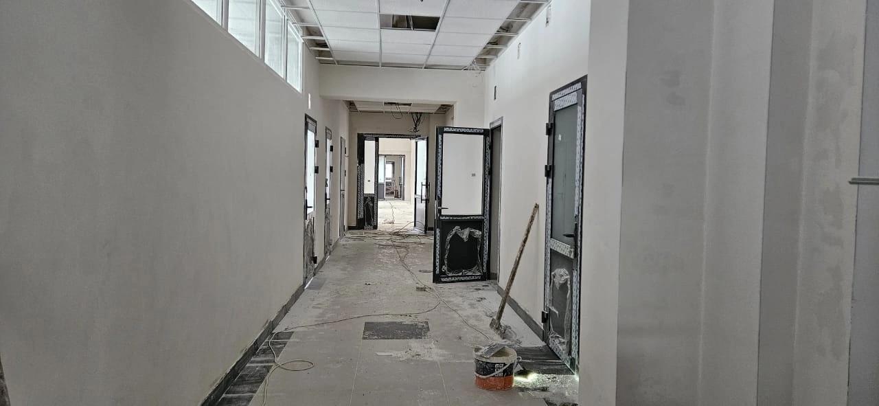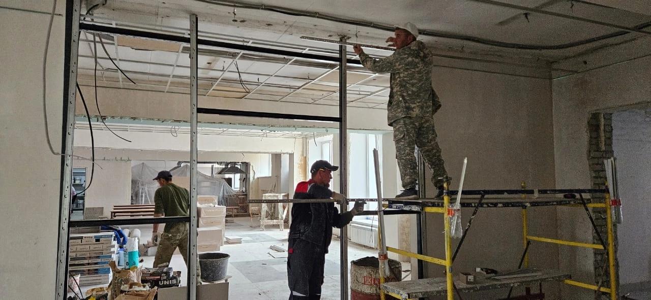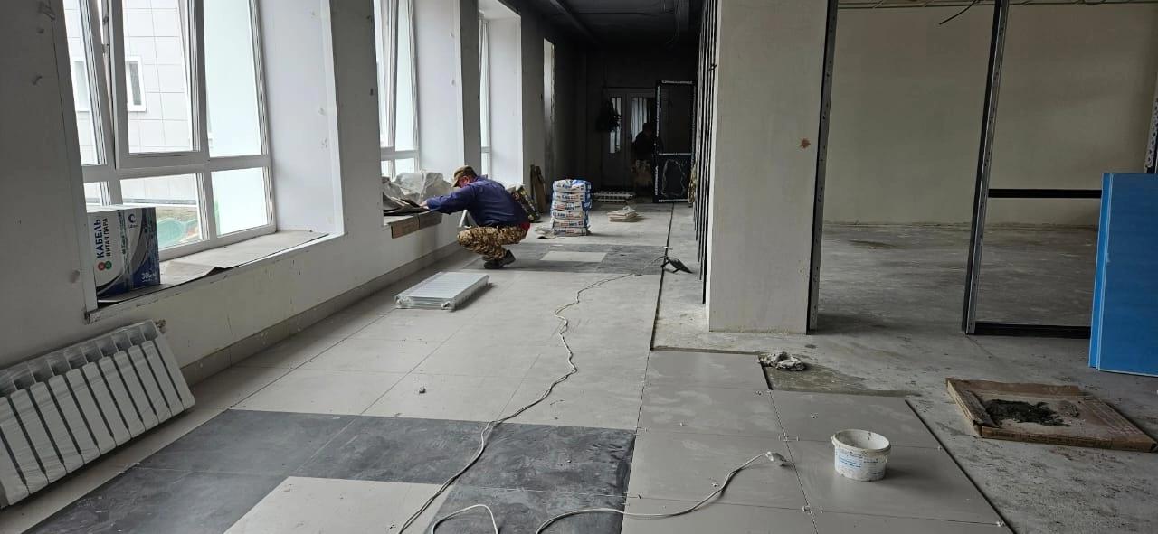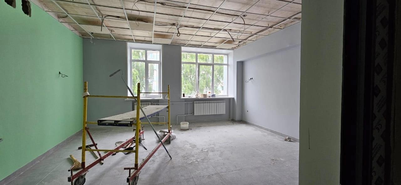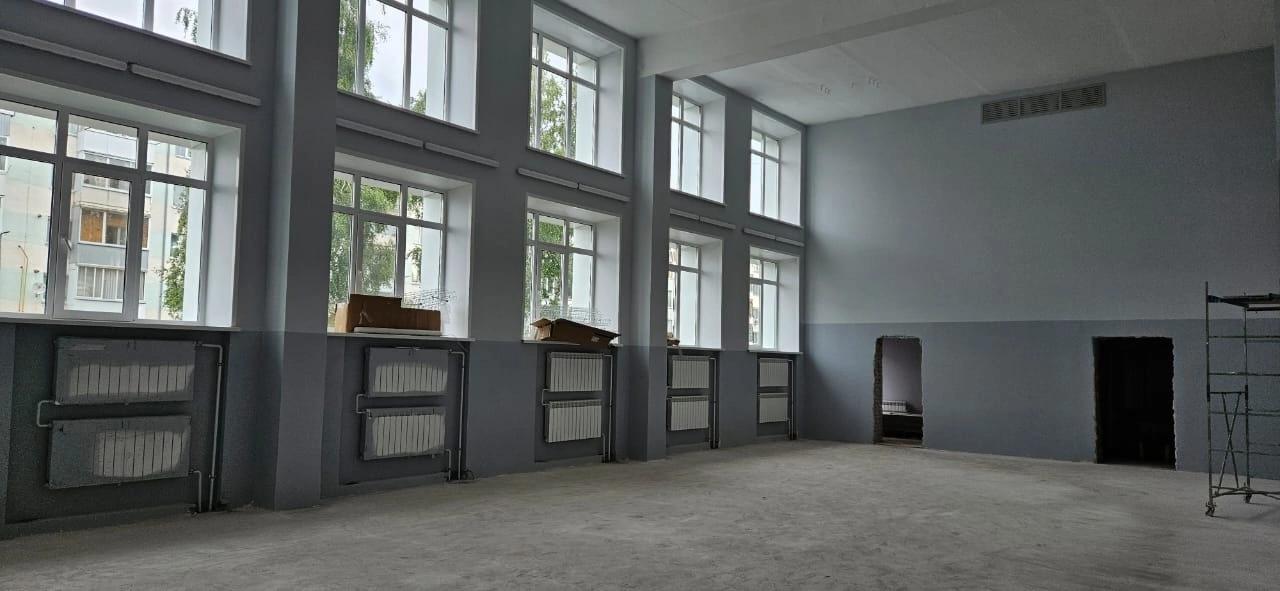 В школе продолжается капитальный ремонт. На первом этапе, который завершился в 2023 году, заменили окна и утеплили фасад. Сейчас, согласно плану, ведутся работы внутри здания – меняют освещение и коммуникации, уложена плитка, стены внутри готовят к дальнейшей работе.