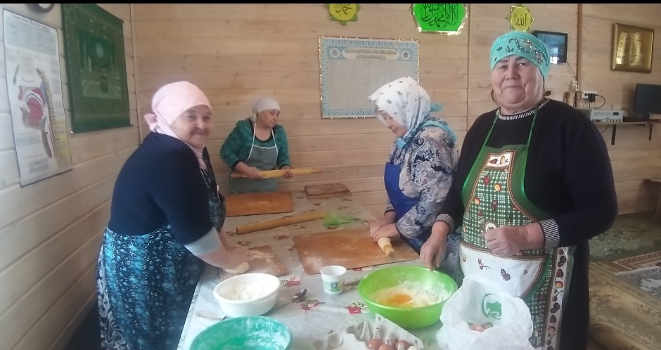 К этому благородному делу всем сердцем присоединились и трудолюбивые сестры села Колыш, развернувшие в мечети настоящую домашнюю мастерскую по изготовлению токмача. С молитвой и душевным трепетом они замешивали тесто, в которое ушло более ста яиц. Каждый кусок теста, каждый будущий токмач создавался с искренними пожеланиями скорейшего возвращения ребят домой.