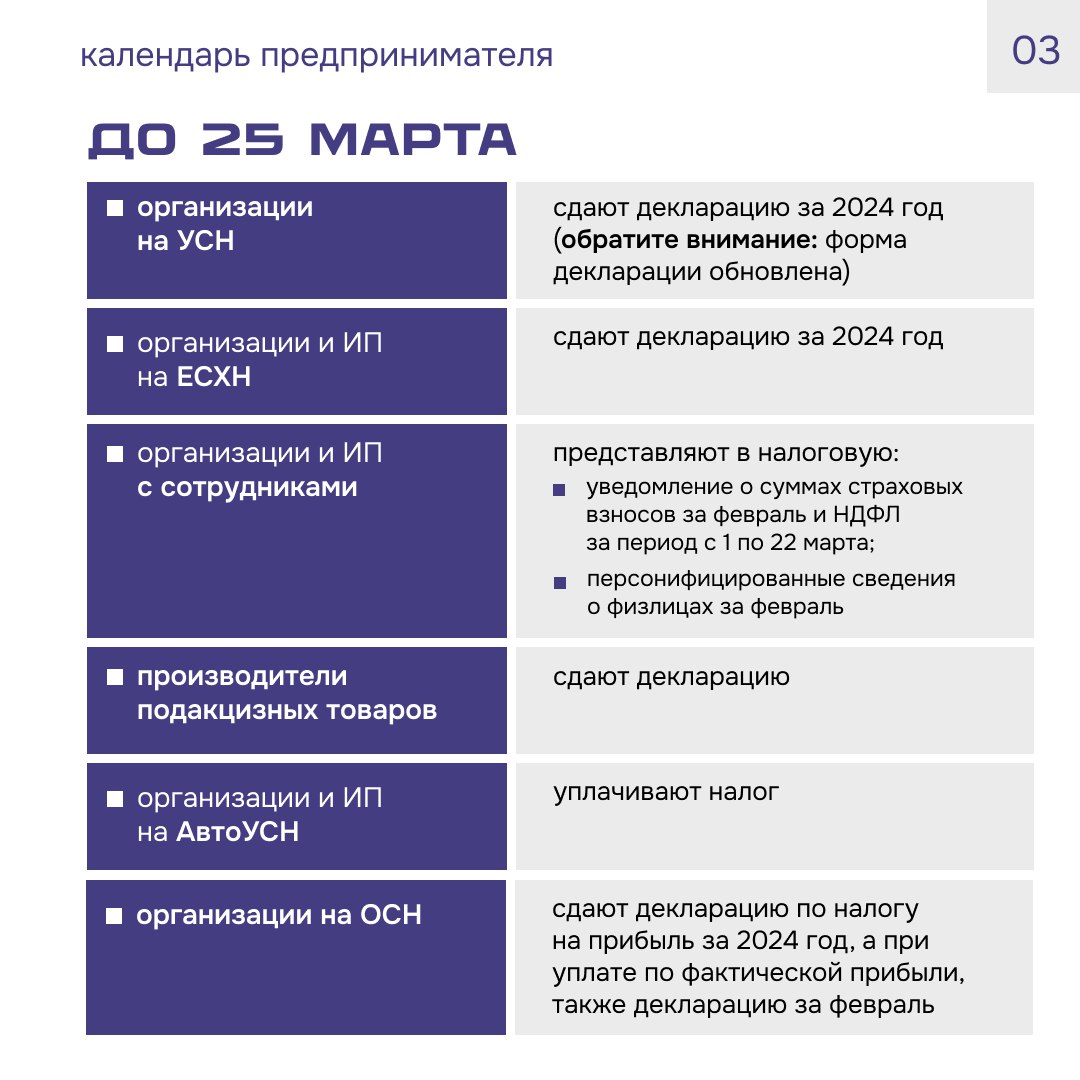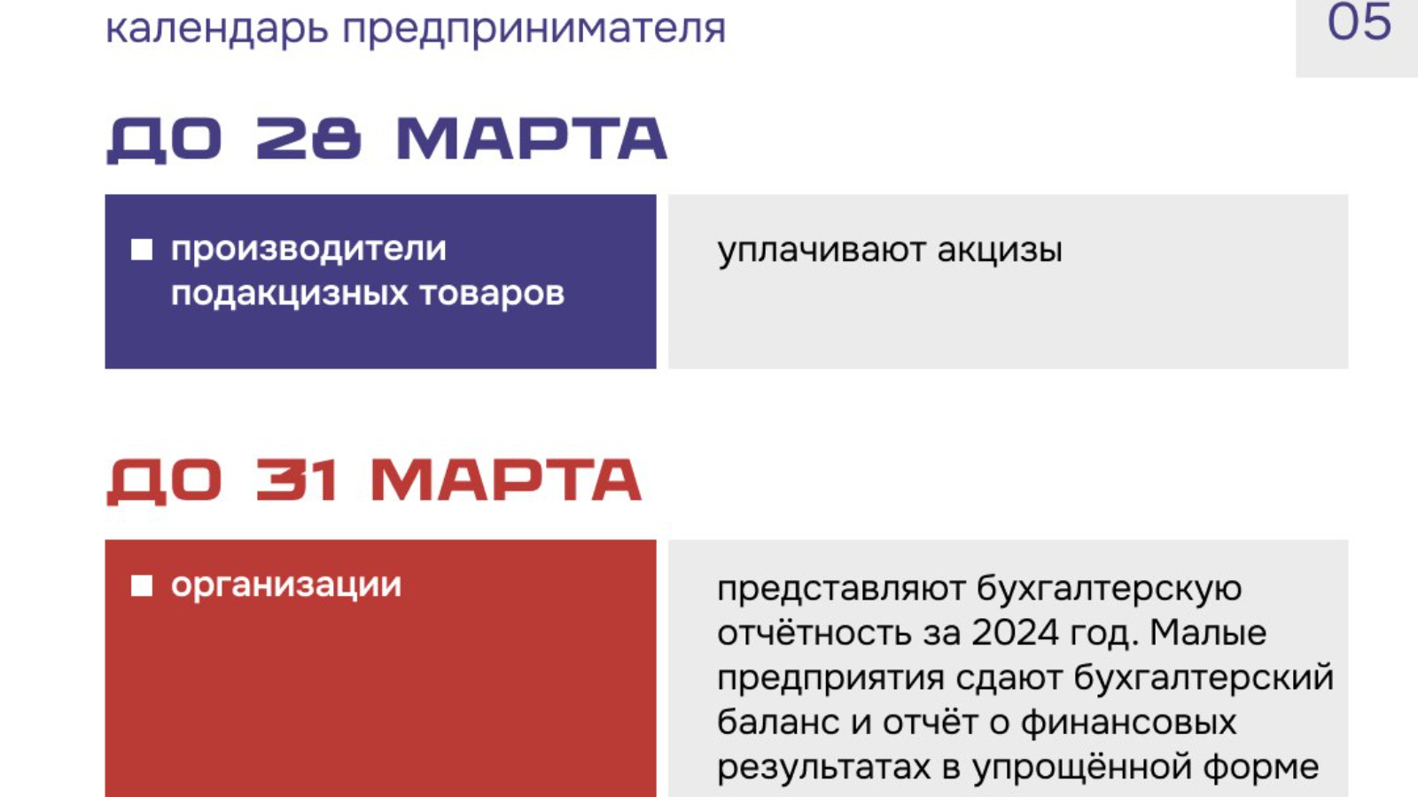 Календарь предпринимателя