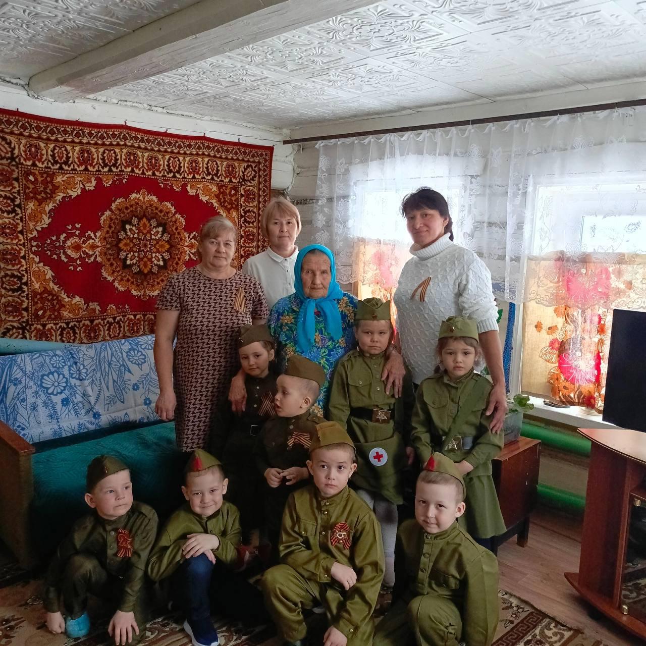 В честь 94-летия труженицы тыла Назили Мугиновой дошкольники из детского сада посетили её с поздравлениями. Дети показали представление и пожелали здоровья.