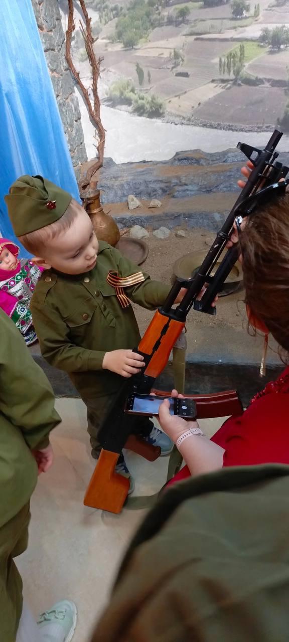 Воспитанники детского сада «Салават күпере» из села Мрясово с восторгом посетили музей воинской славы «Гиндукуш», где смогли не только увидеть, но и подержать в руках каску, макеты оружия, патефон. Даже выстроилась очередь, чтобы примерить каску и взять в руки макет ружья!