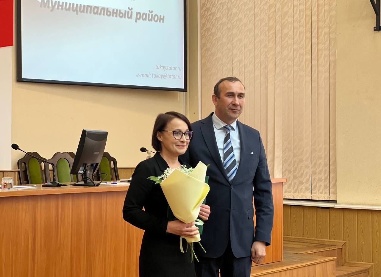 Перед началом совещания Камиль Назмиев поздравил председателя профсоюзной организации администрации района Илизу Шакирьяновну с наградой – Почётной грамотой Республиканского комитета Профсоюза за активную общественную деятельность по защите социально-трудовых прав и законных интересов членов Профсоюза.
