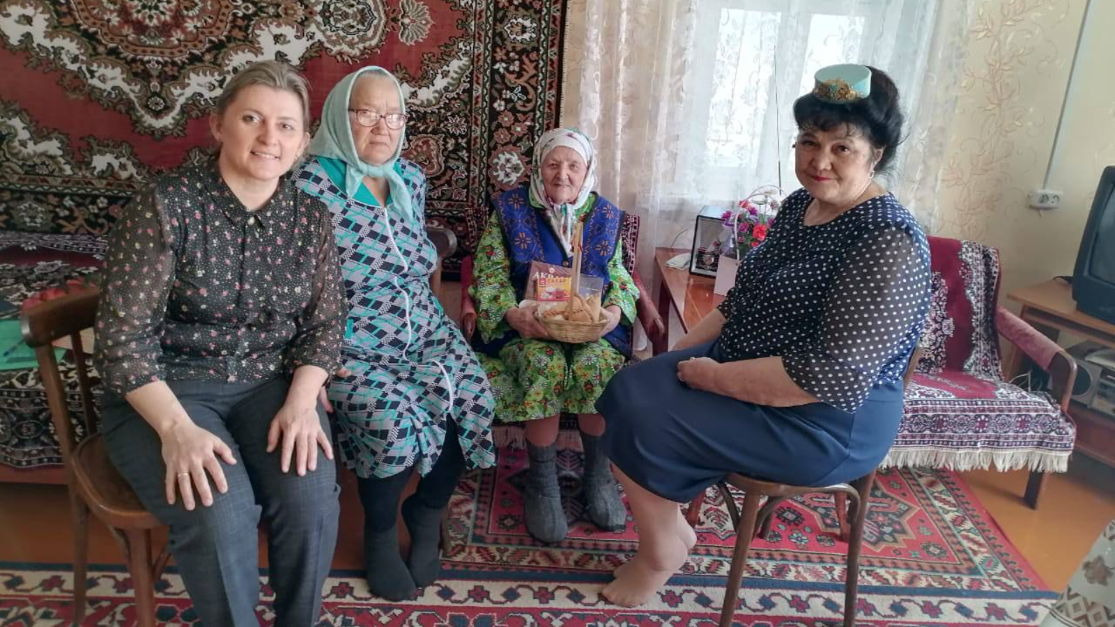 председатель Совета ветеранов Тукаевского района Файруза Вазеева и заведующая отделением надомного обслуживания ЦСОН «Шафкатъ» Гульнур Исмагилова навестили труженика тыла Хайрлевару Ситдиковну Ямалееву. Ветерану выразили слова благодарности и угостили татарскими угощениями – чак-чаком и треугольниками.