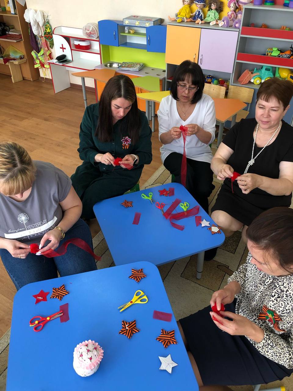 Педагоги делились опытом, провели мастер-класс по изготовлению георгиевской ленты, а маленькие артисты порадовали гостей театрализованной постановкой, стихами и песнями о Родине.