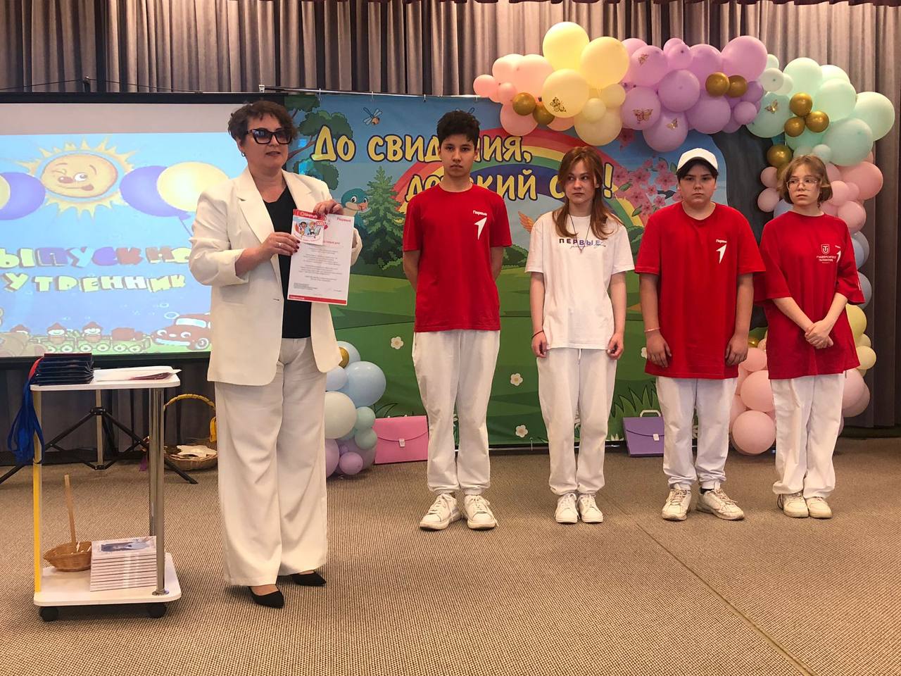 В детском саду «Ромашка» торжество устроили для воспитанников — участников «Движения первых». Поздравить ребят пришли школьные наставники и начальник начального отдела образования Алия Валеева.