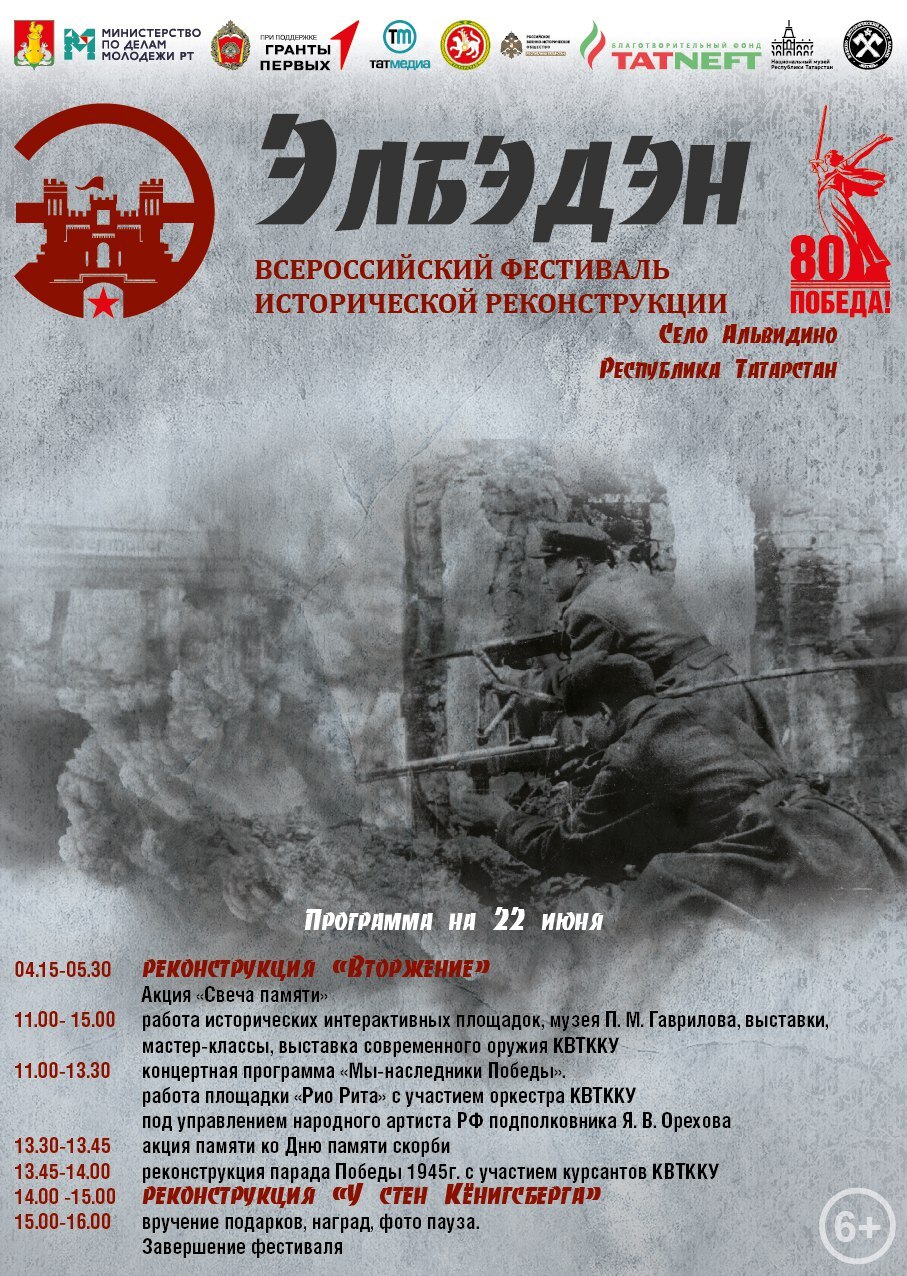 Финалом фестиваля станет реконструкция конца Великой Отечественной войны — операция по взятию непреступной крепости Кёнигсберг. Битва за Кёнигсберг была крайне важной и символизировала не только окончание войны в Европе, но и стала важным этапом, предшествующим капитуляции нацистской Германии.