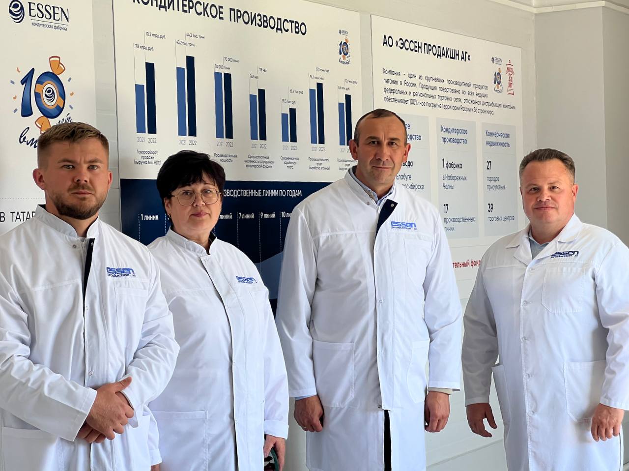 Первым объектом стало кондитерское производство ESSEN (АО «ЭССЕН ПРОДАКШН АГ»), где в год выпускается более 40 тысяч тонн продукции. Предприятие оснащено высокотехнологичными линиями, а продукция поставляется не только по России, но и за её пределы. Состоялась встреча с генеральным директором Леонидом Анатольевичем Барышевым.