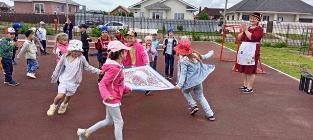 Самым сложным заданием стало попасть по горшку с закрытыми глазами, но наши юные спортсмены отлично справились! Поддержать участников пришли гости праздника — Красавица Алсу и Батыр, а музыку для торжества подобрала наш музыкальный руководитель — татарские мелодии наполнили праздник яркими красками.