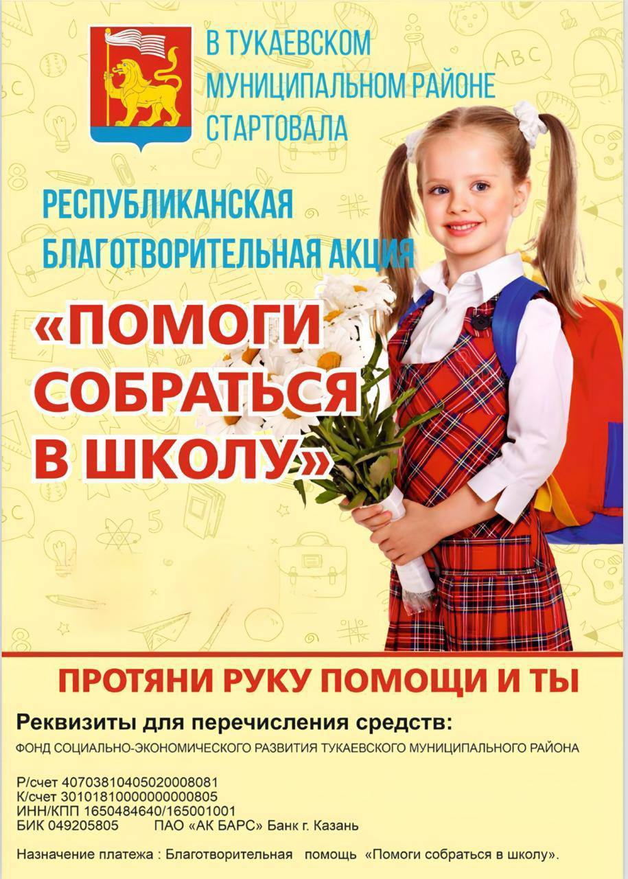 В Тукаевском районе стартовала республиканская акция «Помоги собраться в школу» — каждый может протянуть руку помощи и поддержать школьников.