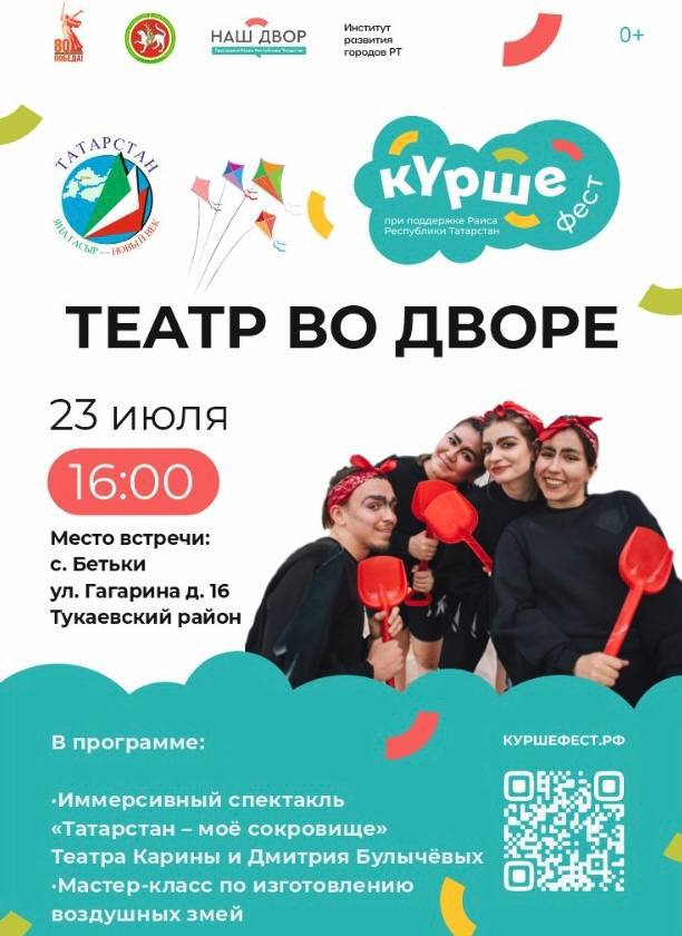 Напомним, в начале июля подвели итоги народного конкурса «Курше фест», организованного при поддержке Раиса РТ Рустама Минниханова. От Тукаевского района победил проект «Театр во дворе», заявитель — Республиканское общественное движение «Татарстан — новый век — Татарстан — яңа гасыр».