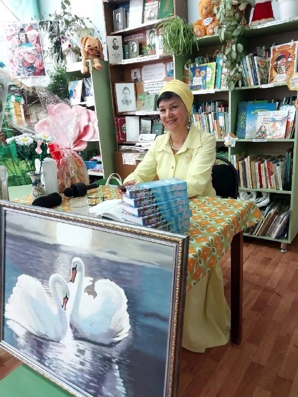 В Калмиинской сельской библиотеке прошла встреча с молодой и талантливой участницей литературного объединения «Ләйсән» — поэтессой, художником, самодеятельным композитором и автором-исполнителем Фаридой Сахабиевой.