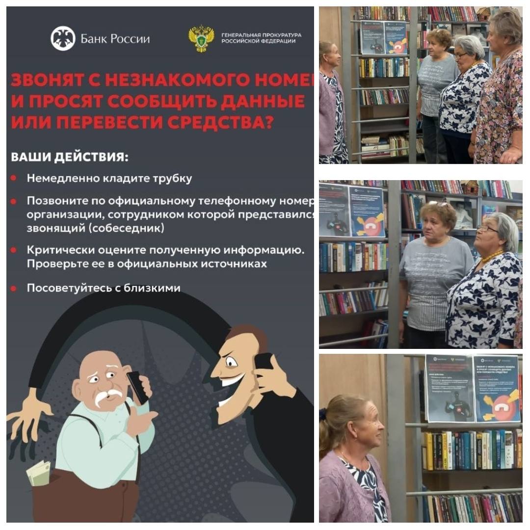 Заведующая библиотекой рассказала о самых распространённых схемах обмана и о том, как не стать жертвой злоумышленников. Участникам была представлена памятка «Внимание! Звонят с незнакомого номера…».