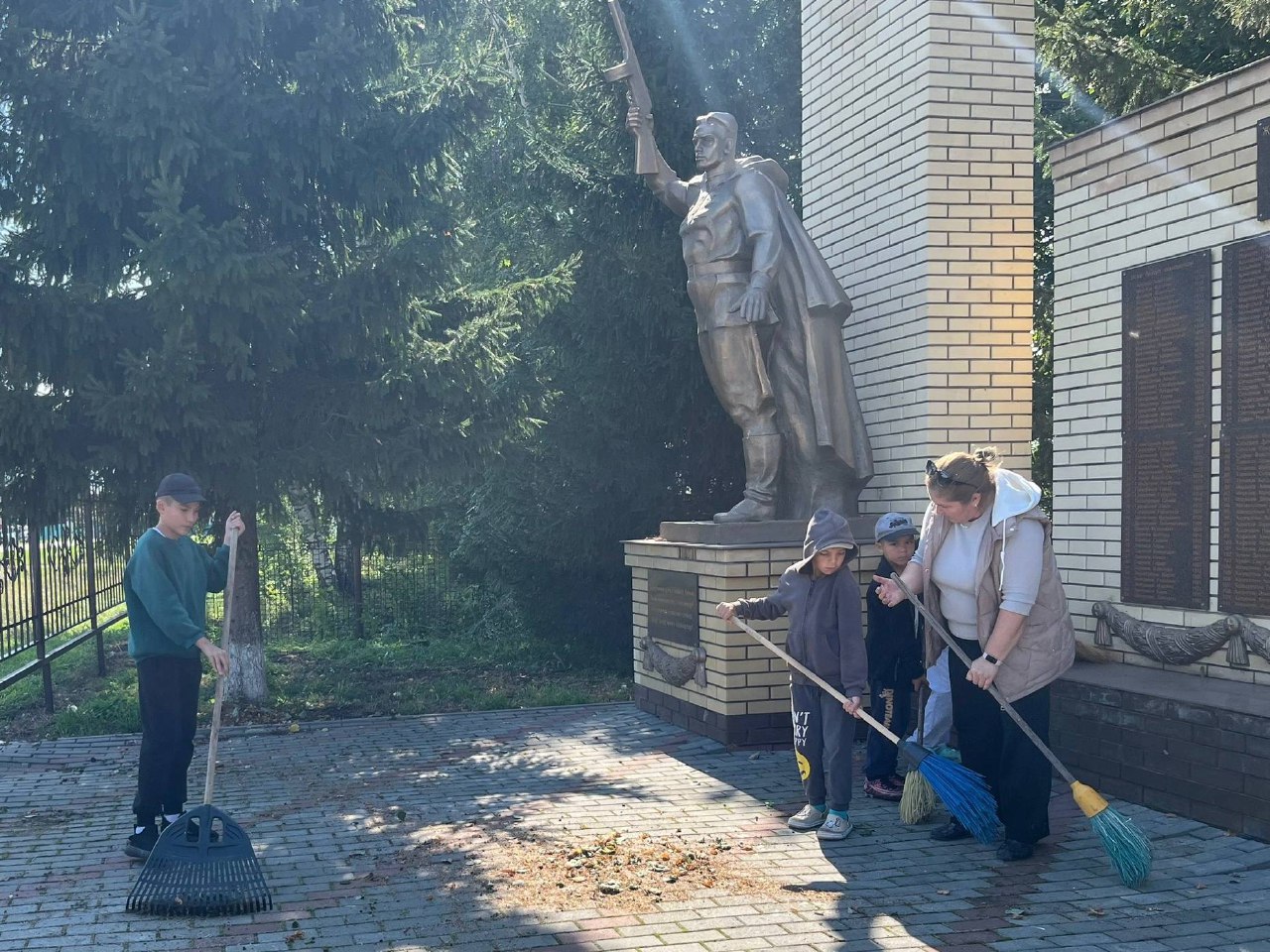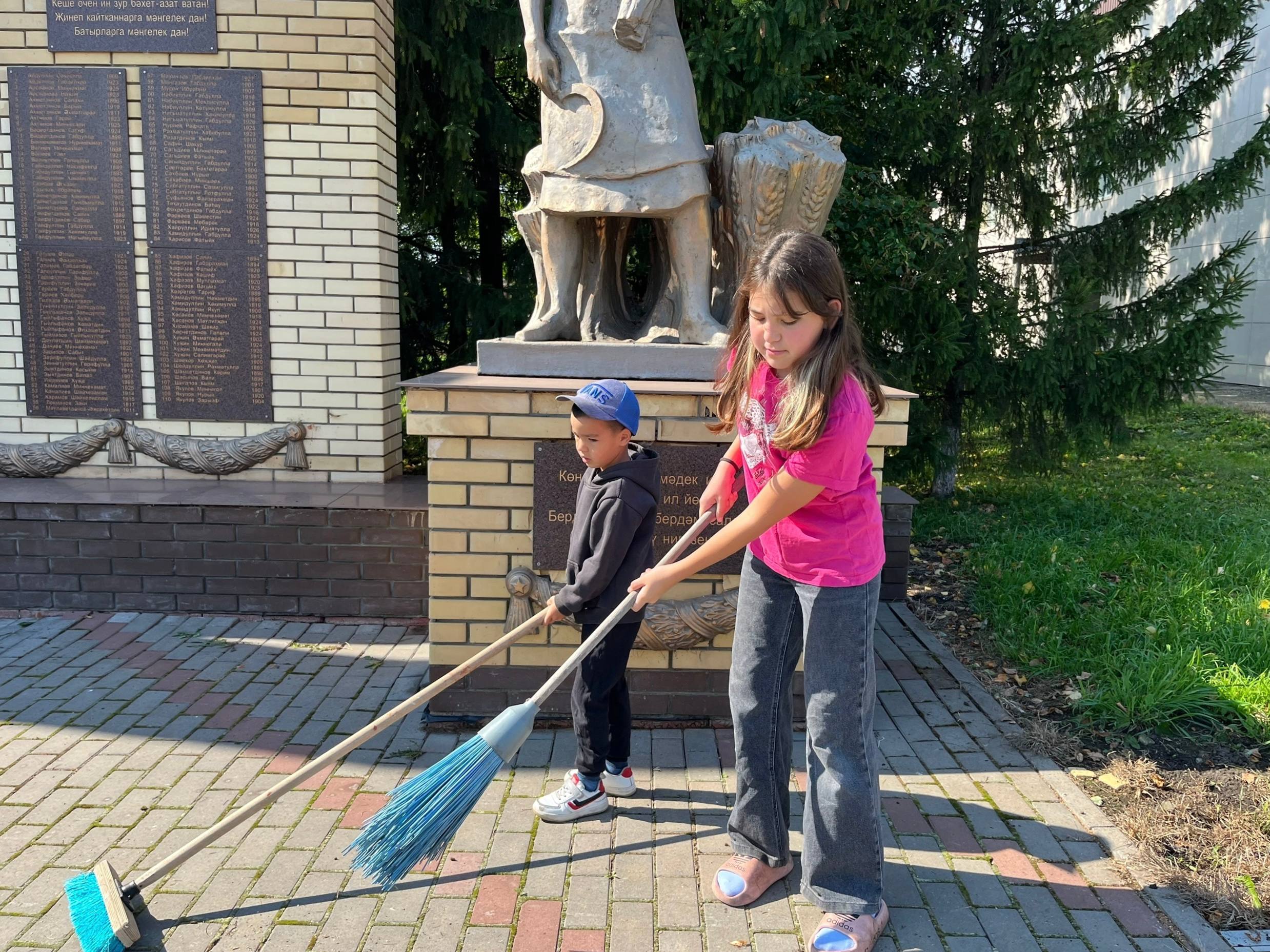 В селе Старое Абдулово сотрудники Дома культуры вместе с детьми приняли участие в акции «Чистый памятник».